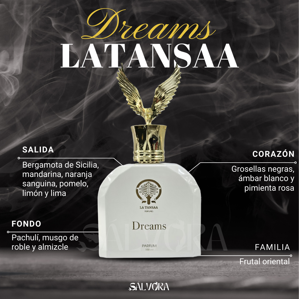 Dreams de LaTansaa es una fragancia masculina que transmite frescura luminosa 🍋, carácter vibrante ✨ y una elegancia moderna 🌿. Su composición se apoya en una salida cítrica intensa, un corazón afrutado-especiado y un fondo limpio y sofisticado, creando una experiencia olfativa equilibrada y muy versátil.