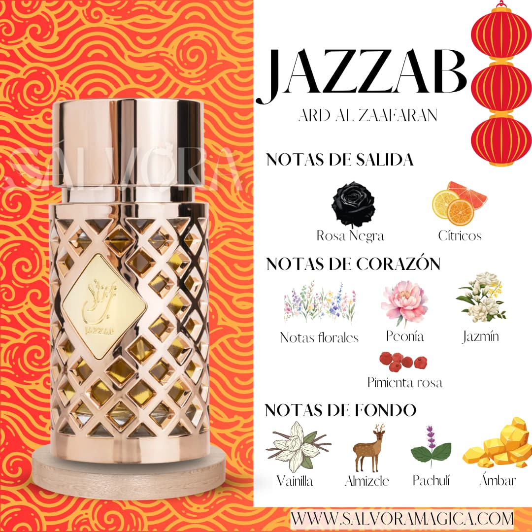 Jazzab Gold de Ard Al Zaafaran es una fragancia femenina que combina elegancia y sofisticación en una composición floral oriental. Ideal para mujeres que buscan un aroma distintivo y envolvente.
