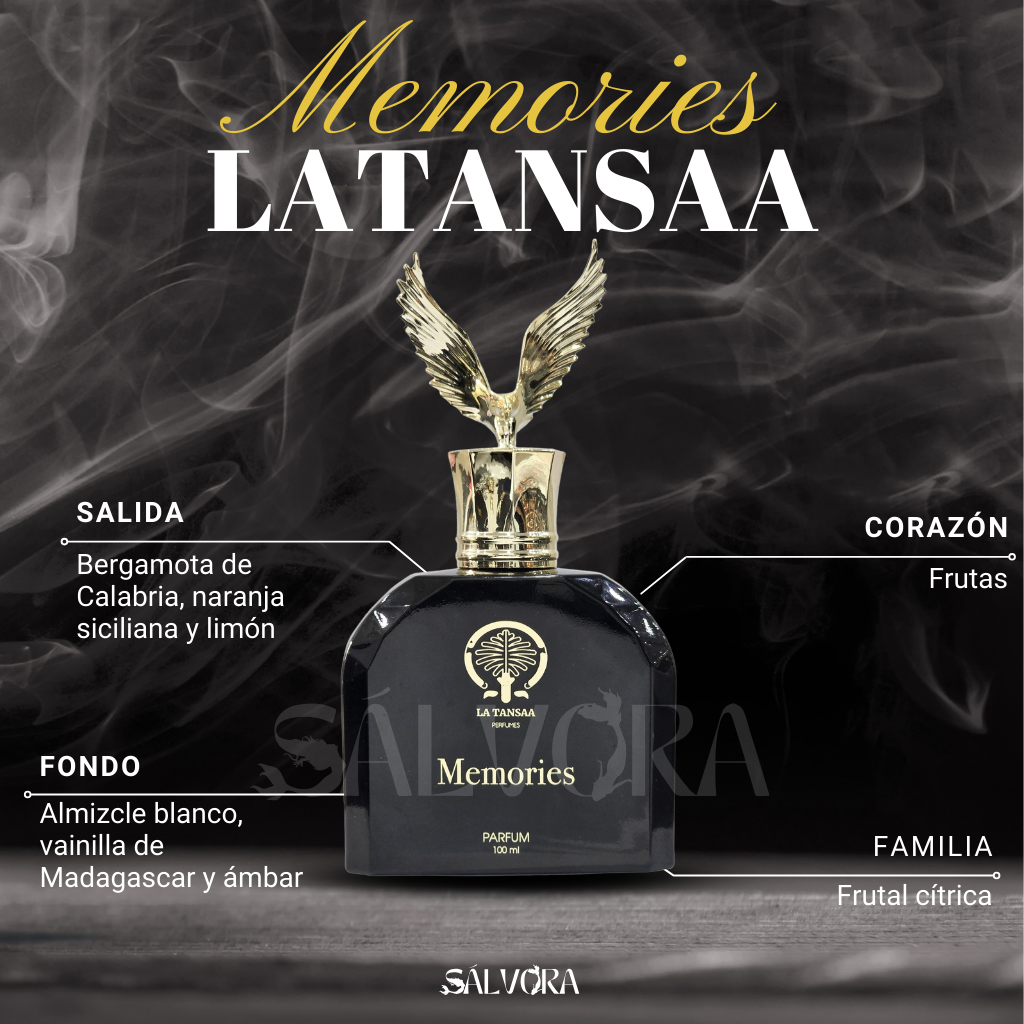Memories de LaTansaa es una fragancia masculina que transmite frescura 🍋, calidez envolvente 🔥 y una elegancia moderna ✨. Su composición equilibra notas cítricas vibrantes con un fondo dulce y ambarado, creando una experiencia olfativa limpia, sofisticada y muy agradable.